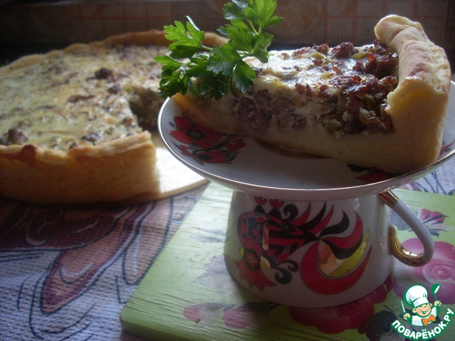 Готовый пирог можно покапать соком лимона, подавать как самостоятельное блюдо или с салатом. -