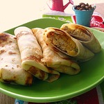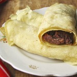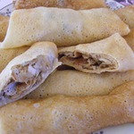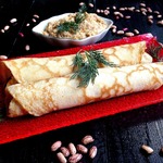 На готовый блинчик выкладываю начинку, распределяю её по всему блину и сворачиваю блин трубочкой.