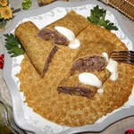 Вот такие вкусные и сытные блинчики у нас получились. Подавать можно со сметаной.