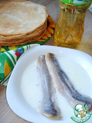 Селедку разделайте на филе (получится 4 филе) обязательно, независимо от того, слабосоленая сельдь или соленая, 2 часа вымачиваем в молоке.