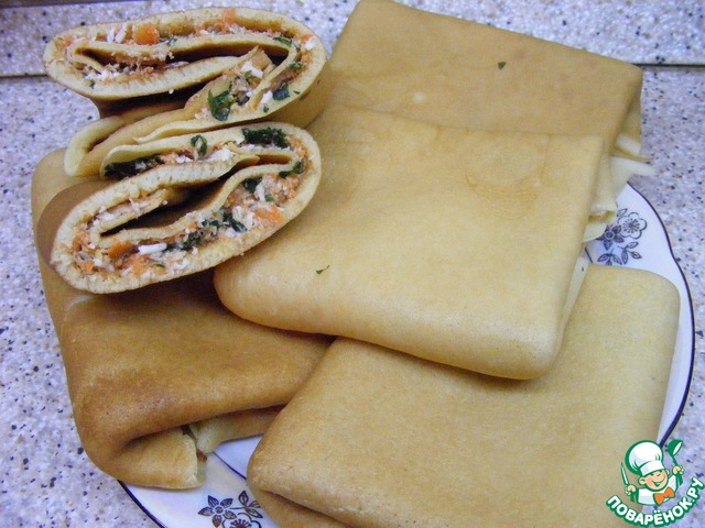 Рецепт «Дрожжевые блины с оригинальной начинкой»: