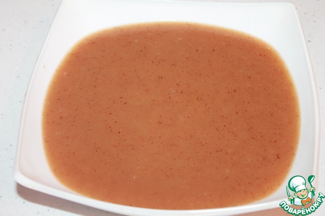 Взбиваем яблочную смесь блендером в однородную массу. Желатин растворяем и добавляем в смесь. Перемешиваем и оставляем на 1 час, пока смесь схватится, но не застынет. Эта смесь очень вкусная, ею можно прослаивать и тортики. Застывает прекрасно, распределяется тоже.