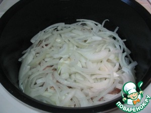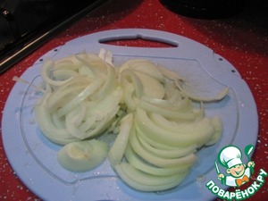 Затем нарезаем полукольцами лук