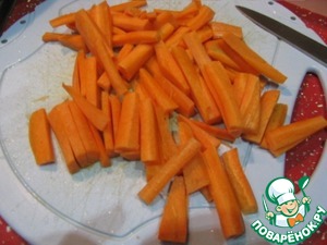 Чистим и нарезаем брусочками морковь