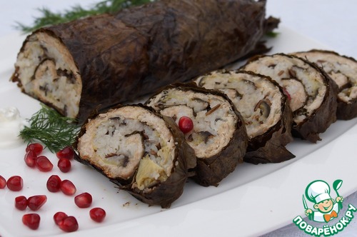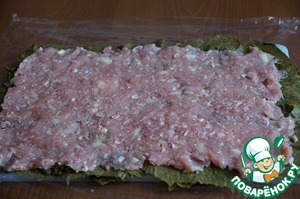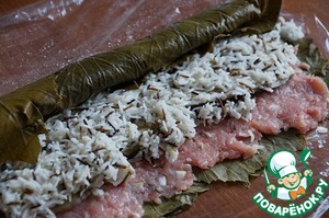 Рецепт «Мясной рулет с рисом и виноградными листьями»: