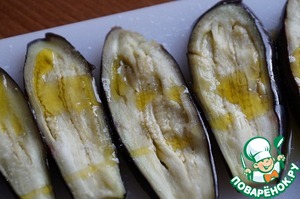 Разрезаем его вдоль, приправляем солью и оливковым (растительным) маслом. Его уже можно кушать (очень вкусно). -