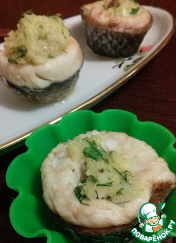 Эту рыбку я попробовала в гостях. Правда, там использовалась семга, и подача была на стейках рыбы. Очень нам понравилась эта рыба - все в одном - и рыбка, и гарнир к ней, вот только кости неудобно было выбирать. Поэтому я слегка переделала рецепт - теперь и рыба более доступная по цене, и кости выбирать не приходится. Заходите, будет вкусно!
