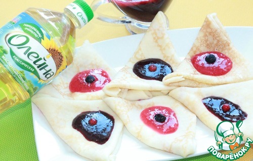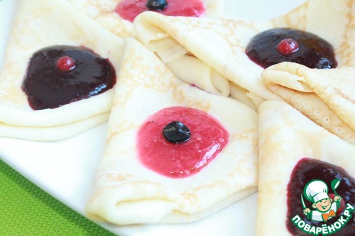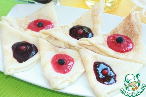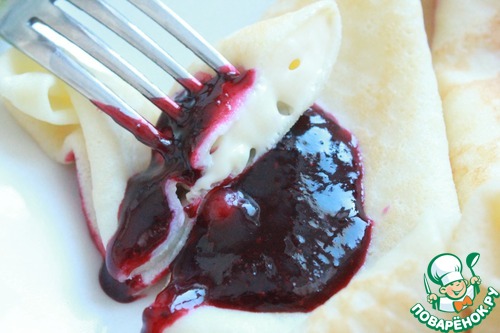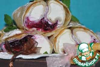 Рецепт «Блинчики с ягодным соусом и сливочным сыром»: