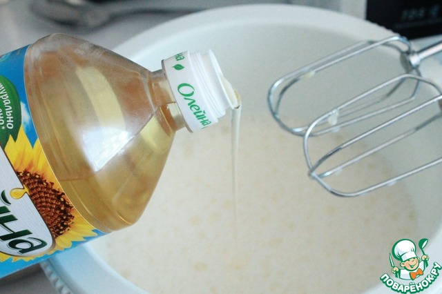 Добавляем растительное масло ТМ "Олейна" классическая. Взбиваем.