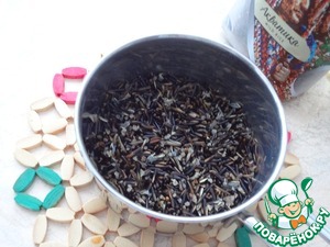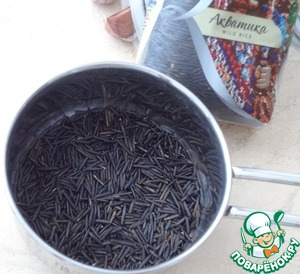 Я использую дикий рис Акватика Wild Rice ТМ Мистраль. Отмерьте крупу, промойте, залейте водой 1:1 и отварите до полуготовности (минут 30).