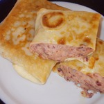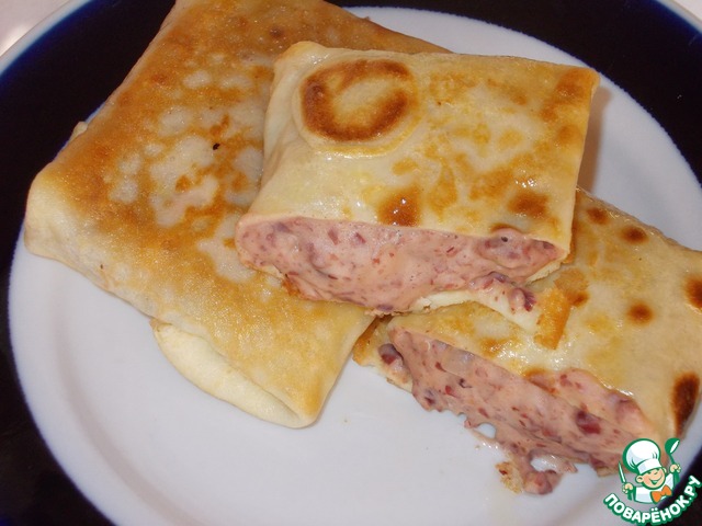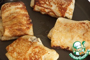 Заворачиваем конвертиком и обжариваем с двух сторон. В это время сыр внутри начнет расплавляться и придаст вкус и пикантность нашей начинке.