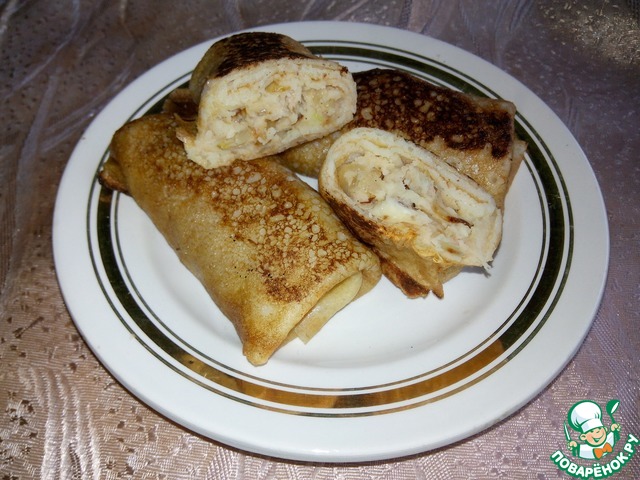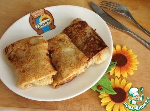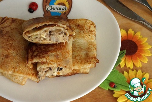 И жарим блинчики. Рецепт можете использовать любой, главное, чтобы они не были сладкими.