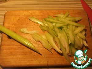 Моем сельдерей, режем поперек на пластиночки (можно нарезать соломкой)