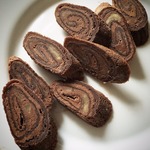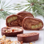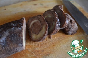 • Перед подачей достаем из морозилки наши рулетики, разворачиваем пленку и нарезаем кружочками.