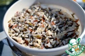 Рис отварить до готовности, согласно инструкции на упаковке, промыть холодной водой.