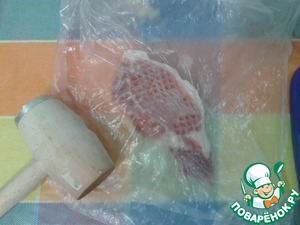 Отбить молоточком, положив кусочек мяса в пакет. Тщательно отбить рядом с косточкой.
