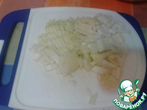 Лук мелко шинкуем, чесночок измельчаем.