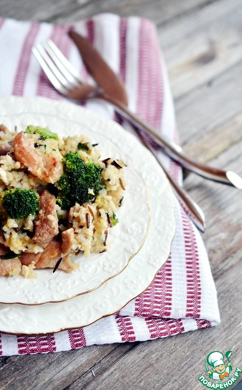 Рецепт «Жареный рис с яйцами, брокколи и свининой»: