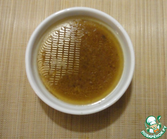 Теперь вспоминаем про процеженный ранее маринад. Добавляем сюда 2 ч. л. меда и хорошо перемешиваем.