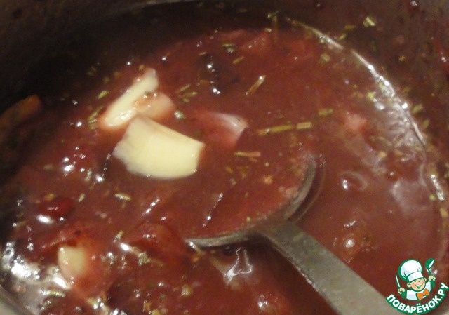 Три зубочка чеснока давим ножом и тоже добавляем в соус. Варим еще минут 10.