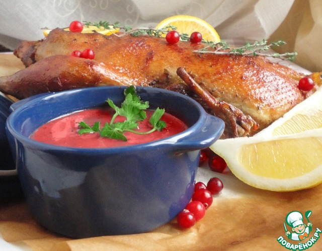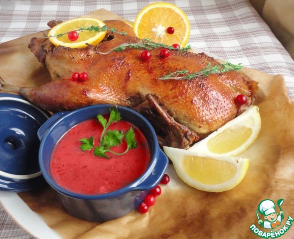 Рецепт «Утка с яблоками и клюквенным соусом»: