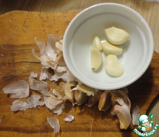 А для этого ее необходимо замариновать. Для приготовления маринада чистим головку чеснока.