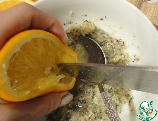 Выжимаем из одного апельсина сок. Важно избежать попадания косточек в маринад.