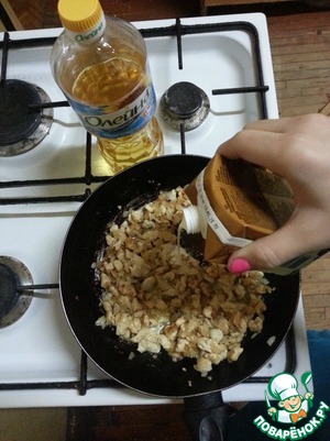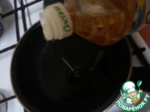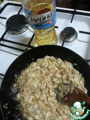 Разогреть сковороду и налить маслом "Олейна".