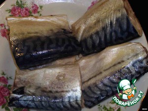 Каждую тушку скумбрии режем пополам (если рыба крупная - то на 3 части)
