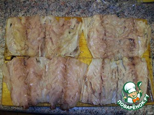 Достаем из каждого кусочка хребет и кости - получаем филе с кожицей