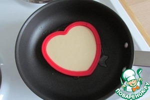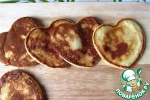 Можно просто испечь круглые блинчики, а потом из них вырезать сердечки, я так думаю...