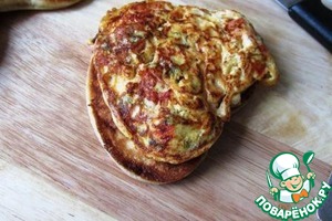 Собираем блинвич: оладушек снизу, начинка, оладушек сверху.