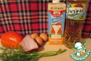 В мисочку разбиваем яйца, всыпаем кубики ветчины и нарезанный укроп.