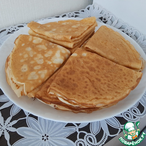 Рецепт «Кефирные блины с шоколадным соусом»:
