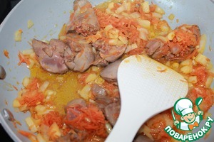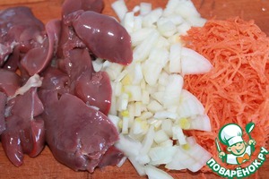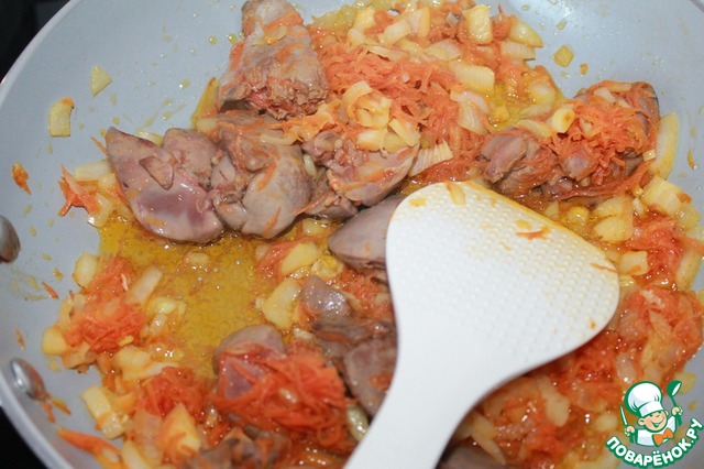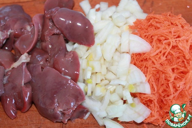 Печень, лук и морковь обжариваем на растительном масле до готовности. Солим и перчим. Пюрируем блендером или измельчаем мясорубкой.