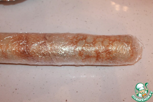 Заворачиваем туго пленкой и отправляем в холодильник. Блинчики являются прекрасной основой.