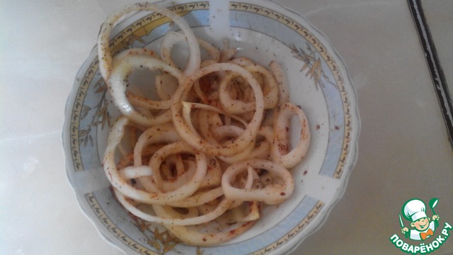 4. Посыпаем солью и смесью перцев, перемешиваем, оставляем минут на 30-40 -
