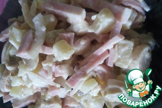 Выкладываем салат в салатник слоями, обильно смазывая каждый слой майонезом: