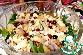 Лет 10-15 тому назад вычитала этот рецепт в тоненьком сборничке рецептов блюд с крабовыми палочками. Несмотря на годы, "Сосновый бор" до сих пор остается частым гостем на праздничном столе. Но будьте внимательны, салат помимо того, что достаточно сытный, еще и достаточно калорийный ;) Майонеза на заправку уходит немало.
