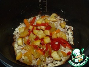 п. с. консервированные овощи можно использовать любые на Ваш вкус. У меня желтые цукини и перец в кисло-сладком маринаде. -