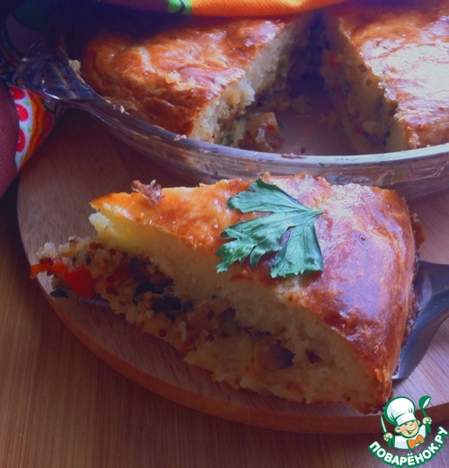 Пироги я очень люблю, чего уж скрывать. Люблю разные начинки и всевозможные виды теста. В этом пироге приятное, слегка сладковатое тесто. Оно замечательно сочетается с любым видом начинки. Мне нравится с мясом, рыбой, просто с зеленью. Сегодня это киноа с грибами и красным болгарским перцем.