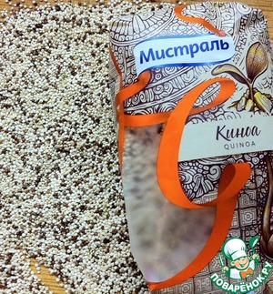 Для начинки мы будем использовать киноа торговой марки Мистраль. Она не слипается и имеет очень приятный вкус и запах.