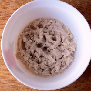 В тресковый фарш добавить отваренную смесь басмати и киноа, 1 яйцо, половину хлеба (предварительно отжав), соль и перец.