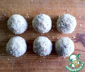 Обваливаем шарики в панировочных сухарях, лучше домашних.