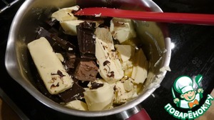 Ставим на водяную баню/в микроволновку/в антипригарную кастрюльку порубленные сливочное масло и шоколад и нагреваем до растворения и того, и другого. Часто помешиваем.