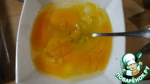 В это самое время слегка взбиваем яйца и половину сахара (135г) в отдельной миске.