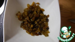 Потом отмеряем изюм, вливаем в него 1 ст. л. ликера (или конькяка, рома...) и немного подогреваем в микроволновке, чтобы он разбух и впитал в себя ликер.