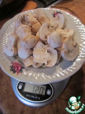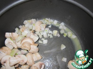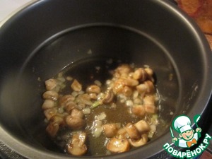 Включаем мультю в режим "жарка" или "выпечка", пока она греется моем грибы и нарезаем в произвольном порядке: половинки, четвертушки как удобно