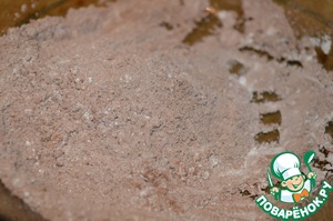 Муку просеиваем и смешиваем с какао, сахаром и дрожжами.