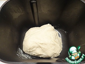 Помещаю ведерко в хлебопечку, включаю режим замеса теста. Даю тесту увеличиться в объеме примерно в 2-3 раза.